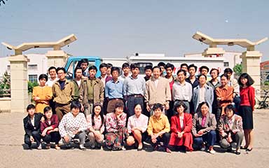 威海特种电源设备厂成立,并从电冰柜厂分离出来,以独立法人资格对外自主经营,自负盈亏,租借厂房500平方米,图为创业初期的28名员工。
