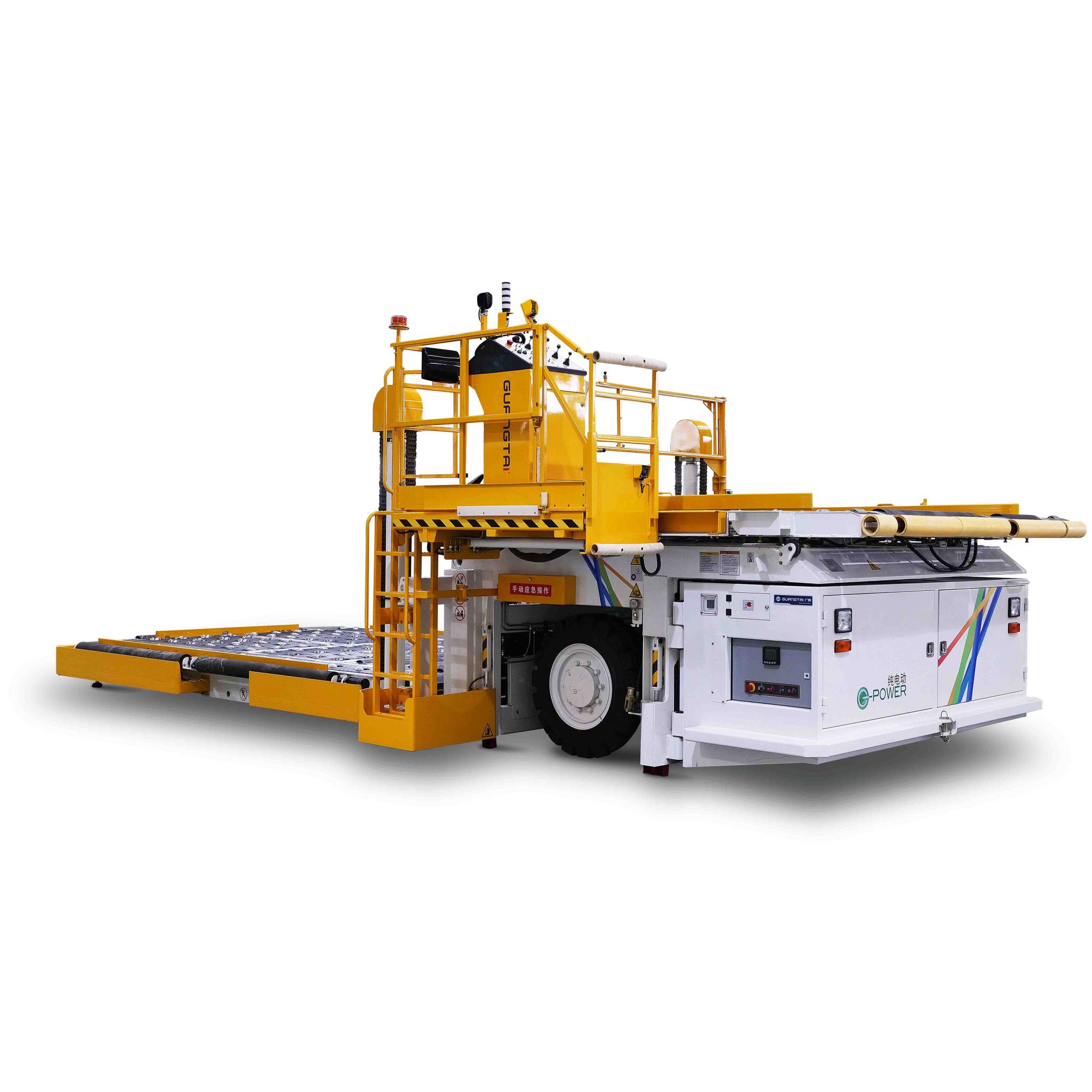 该类设备采用纯电动技术,由电池组给电动机提供动力,是一种将航空集装箱、集装板货物从装载机输送至机舱内,或将货物从机舱运送至地面的机场货运保障设备。主要应用于航空、邮航、专机、公务机的货物、邮件、行李的装载、传送、转场等工作。