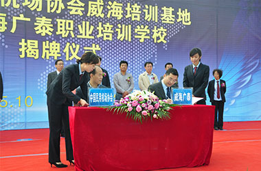 2015年10月,威海皇冠app与中国民用机场协会联合在威海皇冠app职业培训学校成立“中国民用机场协会威海培训基地”,整合优势资源,互利共赢,共同打造空港地面设备从业人员职业化培训平台,进一步拓宽了师资渠道和培训力量,提高培训质量和实效性,对推进我国机场从业人员资质能力培训的系统化、标准化,具有重要意义。