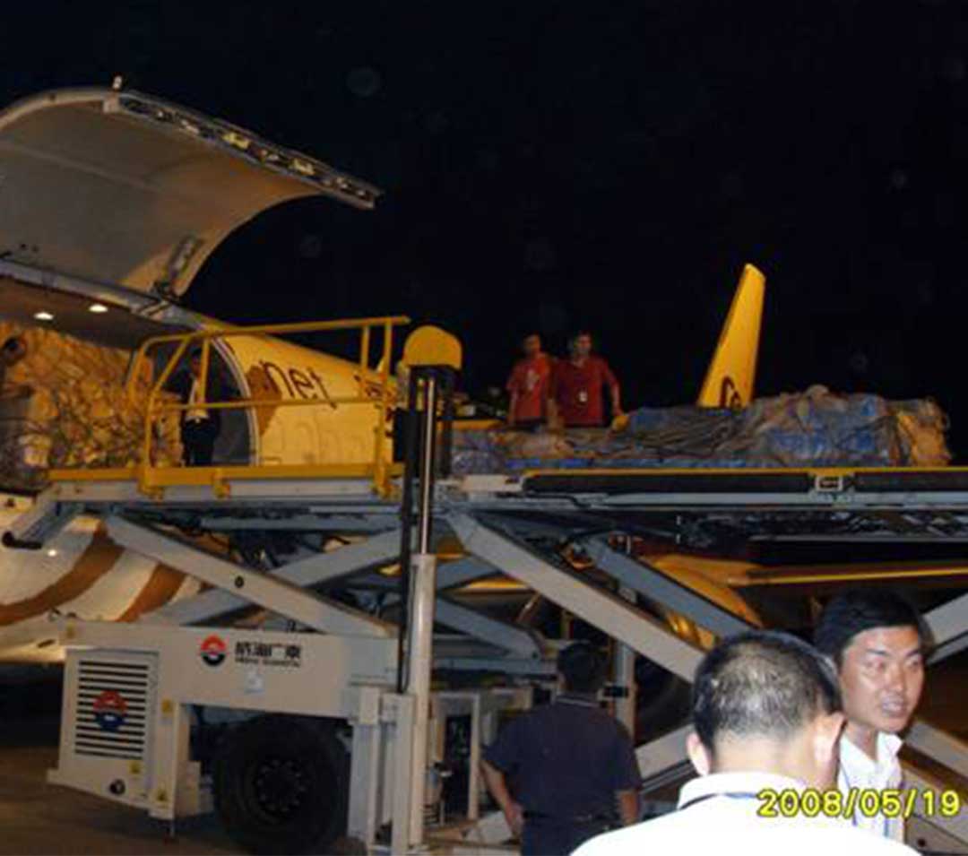 2008年5月16日,汶川地震后公司平台车在绵阳机场作业